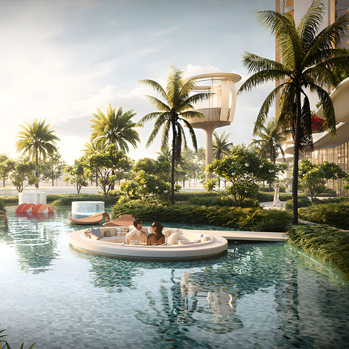The Residences presents a curated suite of exquisite amenities, a vibrant kids’ play area and pool, a rejuvenating wellness spa, a fully equipped. fitness studio and tranquil swimming pools with cascading features, each crafted with artistry and elegance for a luxurious lifestyle.
